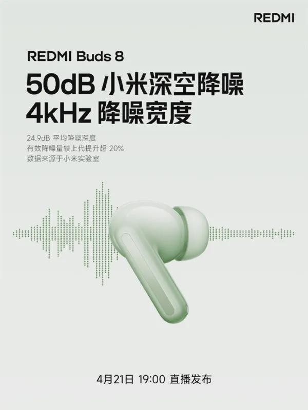 REDMI Buds 8耳机,终于换了立式充电盒,况兼还有50dB的降噪深度,加上12m/s的通话抗风噪,浅易又过劲。
