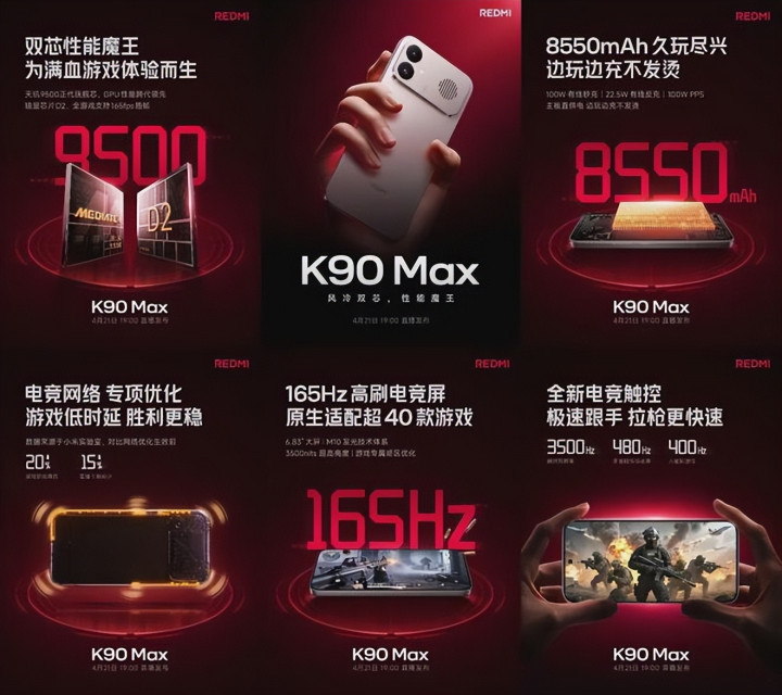 但就在这一派混战之中,红米亦然短暂甩出了我方的王炸——4月21日晚7点,REDMI K90 Max领衔的一众新品,要集体亮相了。