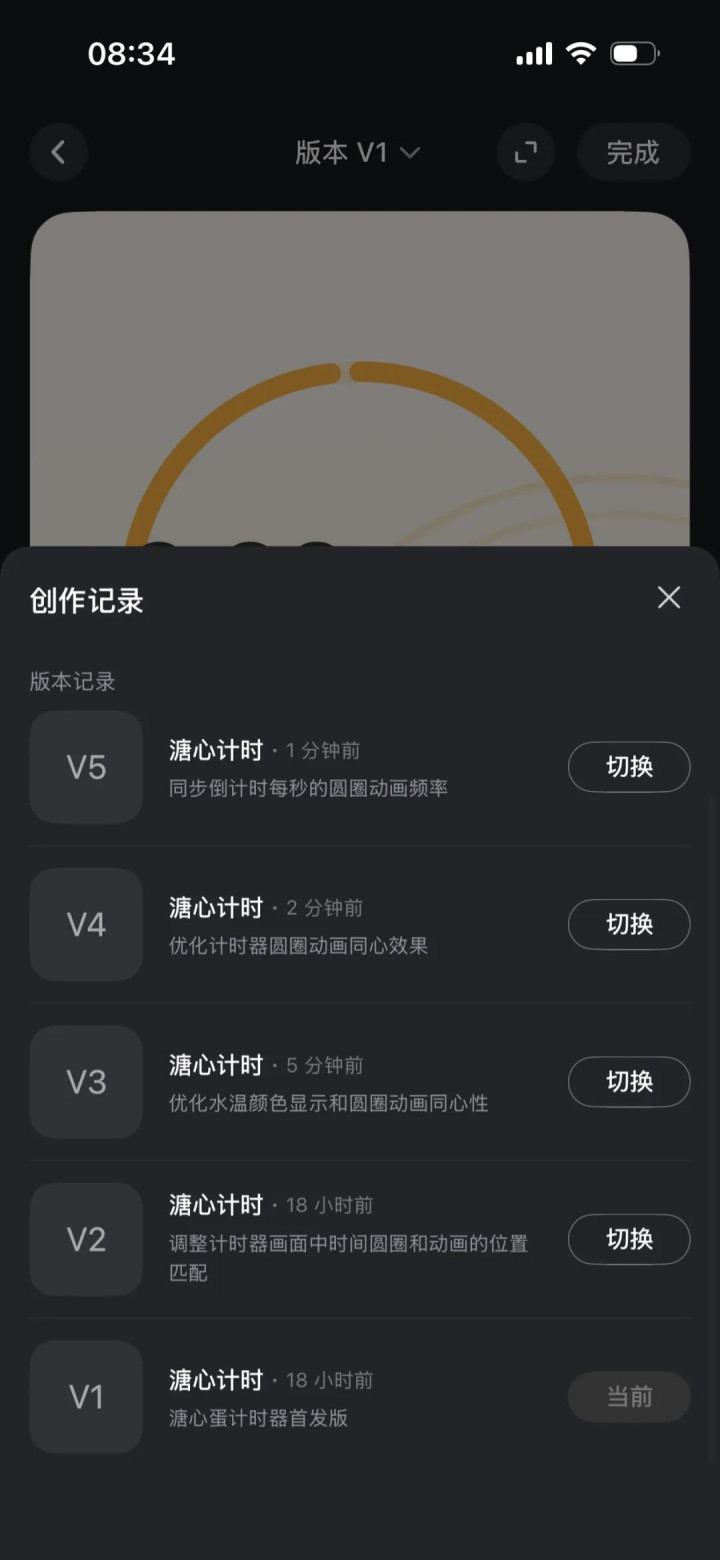 「溏心蛋计时器」一共经历了 5 个版块的迭代,每个版块都可回溯