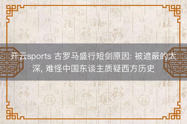 开云sports 古罗马盛行短剑原因: 被遮蔽的太深, 难怪中国东谈主质疑西方历史