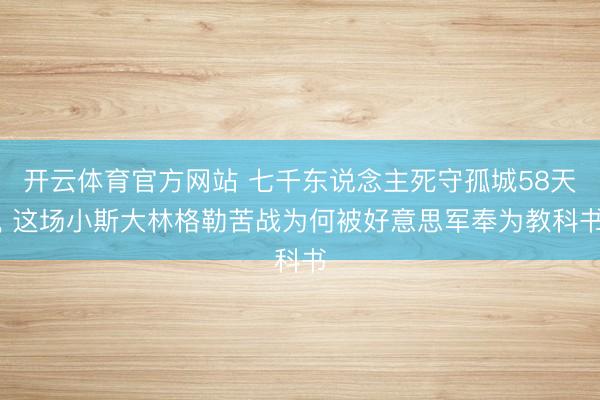 开云体育官方网站 七千东说念主死守孤城58天, 这场小斯大林格勒苦战为何被好意思军奉为教科书