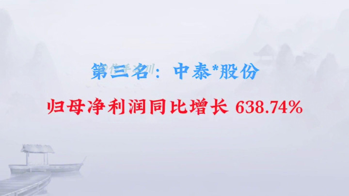 ·第三名:中泰股份,归母净利润同比增长638.74%。