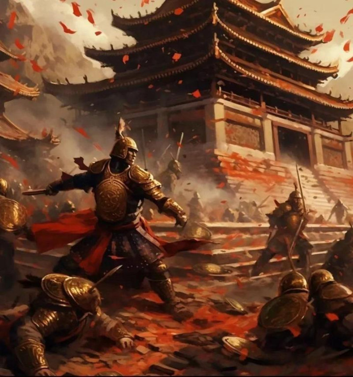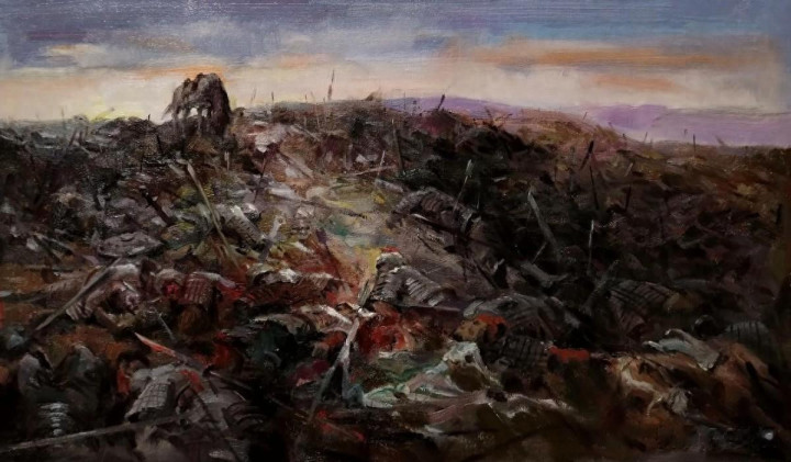 他脱掉盔甲,赤裸着上身,手抓一把冷光闪闪的陌刀,冲到了阵前。