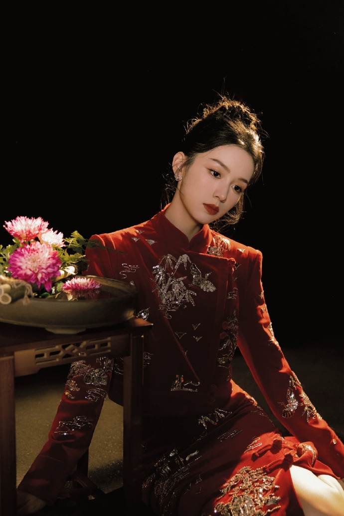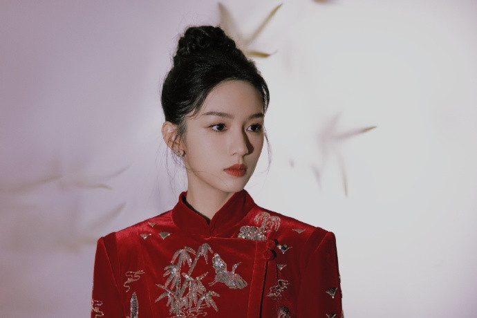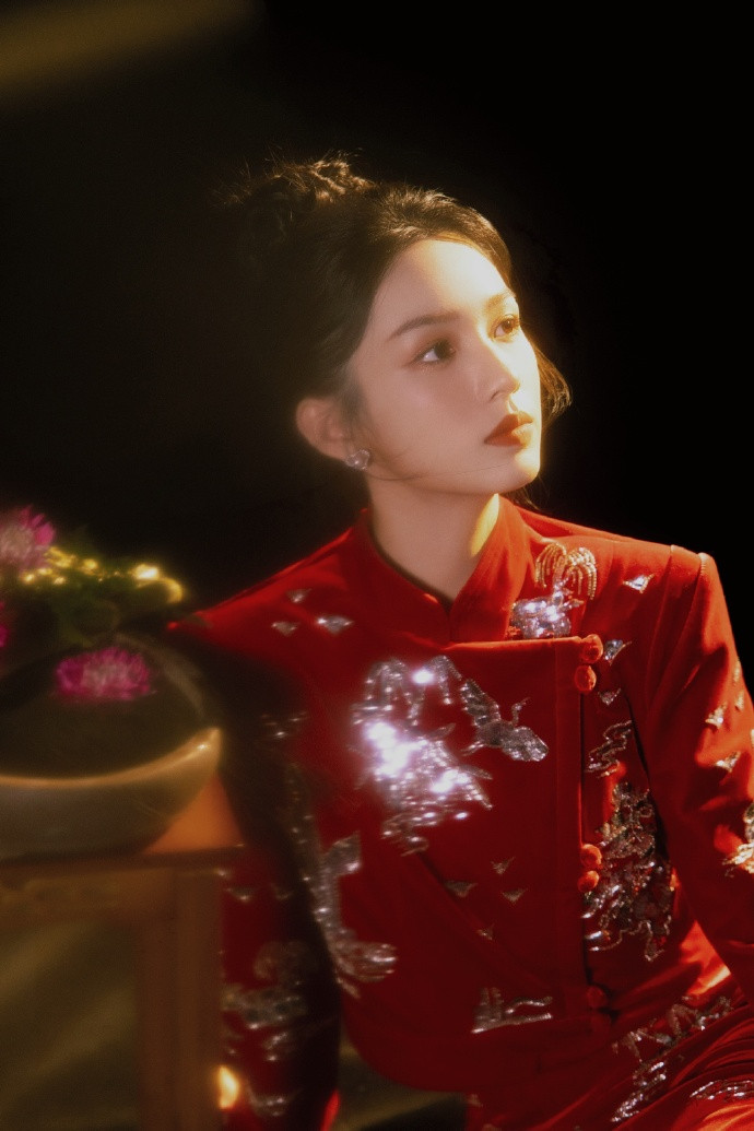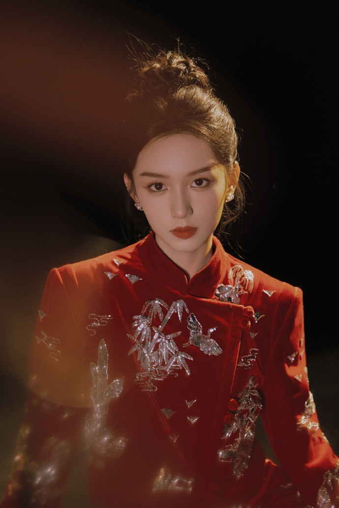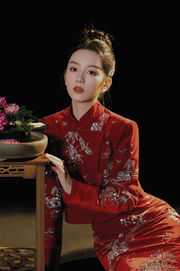 开云体育 周也的红色旗袍, 这红红火火的方法, 果然是极端喜庆!