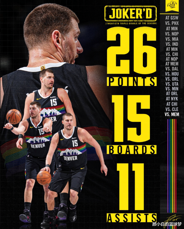 掘金一度逾越灰熊15分但在小节两次被残阵灰熊放松到1分,好在约基奇决胜技术完成1攻1防,kaiyun sports最终约基奇拿到26分15篮板11助攻完成活命第184次三双,掘金再度回到西部第三。