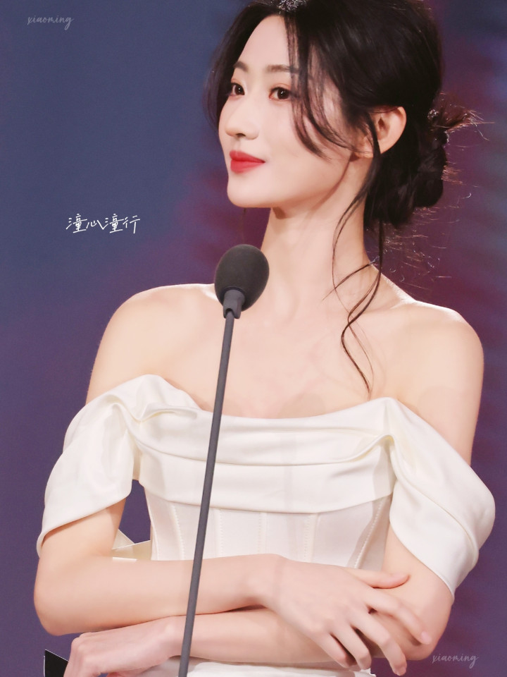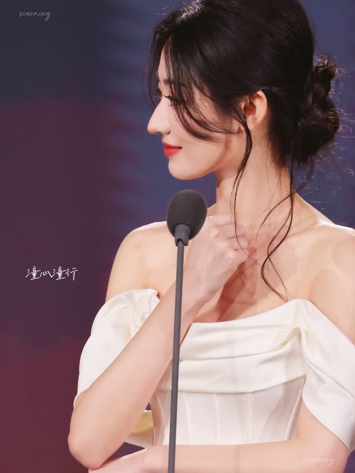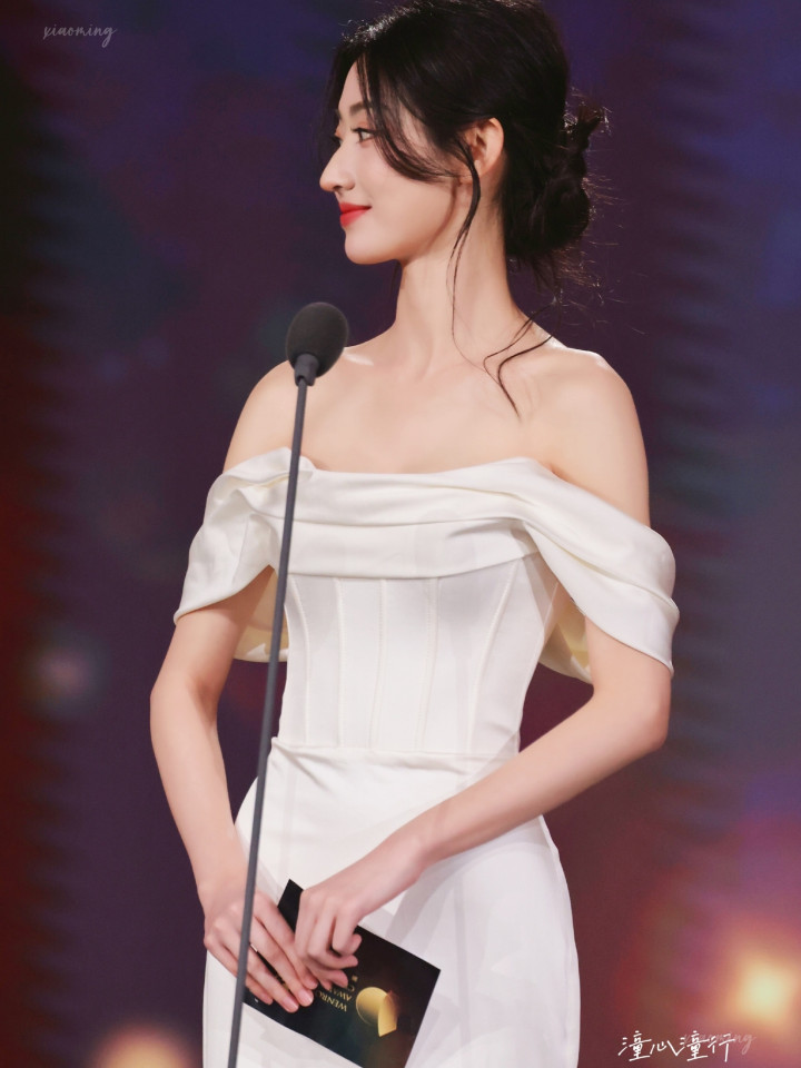 杨雨潼银河肩线造型,柔纱裙摆高清图集,慈详气质超迷东谈主