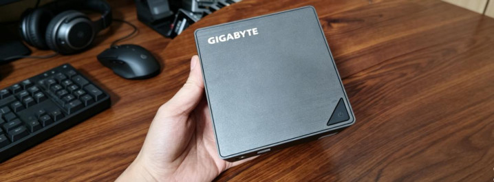 这台技嘉迷你电脑,尺寸惟有180x117x36毫米,分量900多克。整机功耗达成得可以,i3 7100u的TDP惟有15瓦,最高可设立降到7.5瓦,发烧量颠倒小。全机身都是散热鳍片,零杂音启动,放在卧室、书斋或者车里都不会吵东说念主。