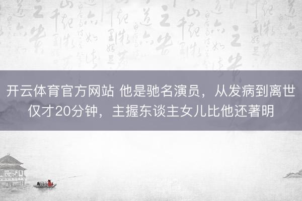 开云体育官方网站 他是驰名演员,从发病到离世仅才20分钟,主握东谈主女儿比他还著明