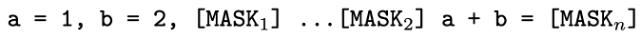 不错发现对于终末一个 mask_n,其只可在看见 a=1,b=2 的情况下去学习 a+b=7,会酿成诞妄的学问映射。终末充其量也只可学到,a=3,b=4 在 a+b = 这个语境下的共现概率更大少量,不可学到明确的加法规则。
