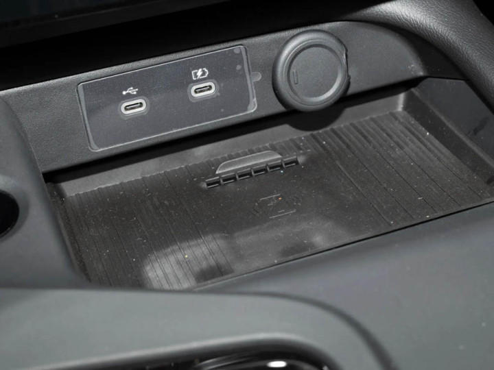 地点盘是双辐式贪图,稳妥其家用轿车的定位。空调出风口为矩形神志,往下则是手机无线充电面板,况兼带有透风口,以看重充电时手机过热。