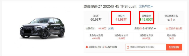 轻佻分析完花四五十万买电车的毋庸要性,咱们再来看花相通价位所买到的燃油车奥迪Q7有何性价比。