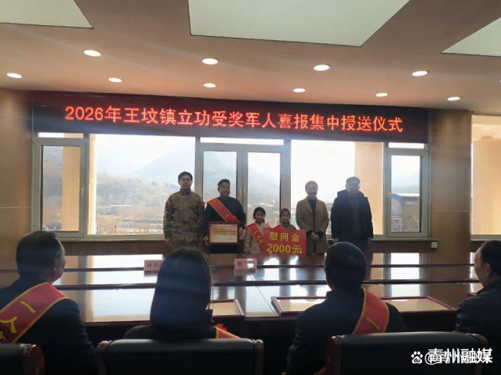 青州市退役军东谈主事务局分摊厚爱同道紧扣2026年春节拥军优属责任条目,向现场军属详备先容了我市最新的拥军优属干系计谋及落地举措。市东谈主武部分摊厚爱同道宣读2026年度王坟镇荣立三等功及以上军东谈主名单,并为每位建功军东谈主家属奉上喜报、慰问金和慰问品。