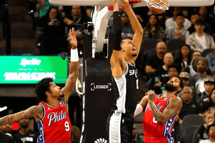对于出场时辰,定约其实也有截止,只不外是特出20分钟就行。但最主要的照旧65场比赛的硬性筹画,这一截止,让爱德华兹、康宁汉姆还是退出了本赛季的成例赛奖项竞争。有东谈主说成例赛报销的东契奇也没了但愿,但他的经纪团队还是向定约发起了讲述。何况除此之外,诚然东契奇的场次不够,但他本赛季的总上场时辰,比文班亚马多出接近500分钟!很显然,这是雷迪克的用东谈主问题,亦然东契奇受伤的关键。而就在今天,文班亚马也迎来了坏音信。主场对阵76东谈主的比赛,文班亚马对上了一位强力内线恩比德。不外现时的恩比德,管辖力大幅下滑。