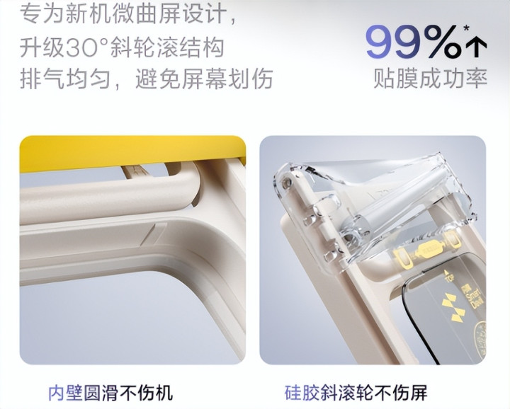 针对这一消耗者慌张,各大厂商加快普及秒贴盒和滚轮式无尘仓等扶持器具。闪魔近期更是苦求了30°斜滚轮舱体贪图专利,左右斜线推力镌汰对保护膜和手机屏幕的伤害,不仅确保了排气均匀,更将贴膜见效率普及至99%,极大镌汰了消耗者的试错门槛。