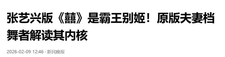 《新民晚报:张艺兴版〈囍〉是霸王别姬!原版夫人档舞者解读其内核》
