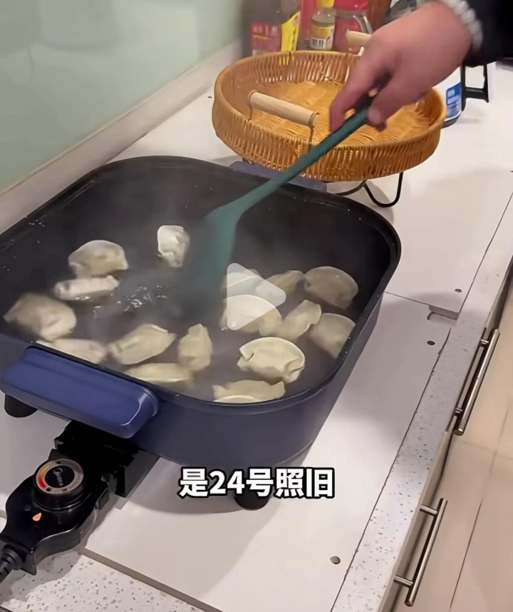 镜头里只出现他一东说念主,一边开水烧着,一边饺子下锅。