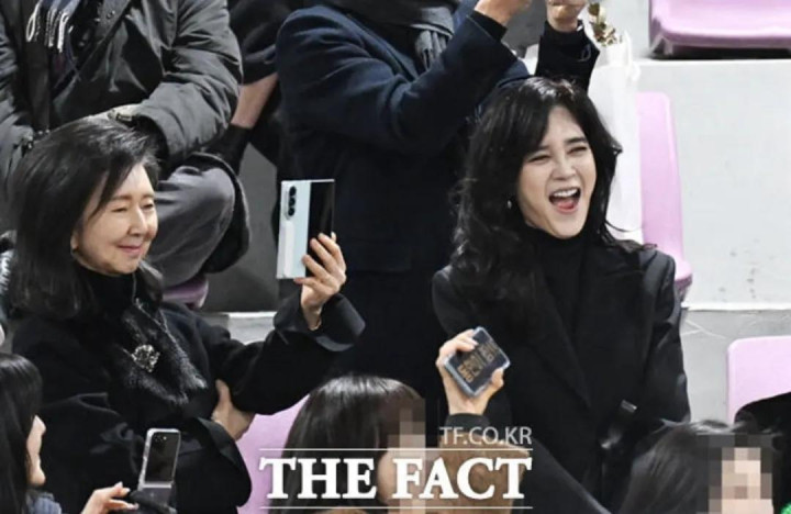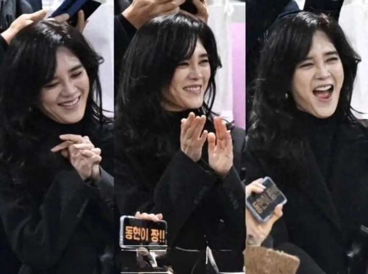 2月9日,首尔某高中的毕业庆典现场,三星长公主李富真穿戴孤苦玄色羊绒大衣,坐在不雅众席上给男儿任东贤拍照。