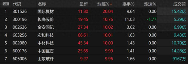 当天上昼,电子布见地迎来爆发。终端发稿,宏和科技、外洋复材、中材科技、山东玻纤、中国巨石、金安外洋等多股涨停。其中,宏和科技、外洋复材、中材科技续创历史新高。