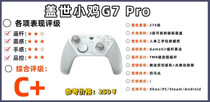 这款手柄外壳采取磨砂PC材质,握把区域有防滑纹渴望象,握持酣畅褂讪,分量适中。中枢操控采取霍尔摇杆有策动,十字键和XYAB动作键为导电胶想象,手感可以。摇杆补助詈骂调理(升降摇杆或增高摇杆帽),中心吸奖饰十字吸附情况精真金不怕火,推杆与画圆线路平稳,举座操作顺滑。扳机为霍尔线性想象,三段式扳机锁切换顺畅,最小档位按下即触发,手感均匀。