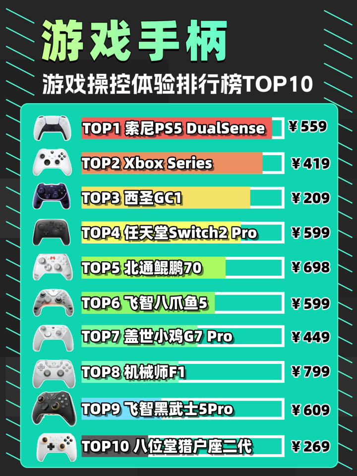 看成别称永久关心游戏外设的数码博主,我体验过不少热点游戏手柄,并结合玩家口碑和专科测评数据作念了整理,汇总出一份最新的游戏手柄推选榜单(如下图)。