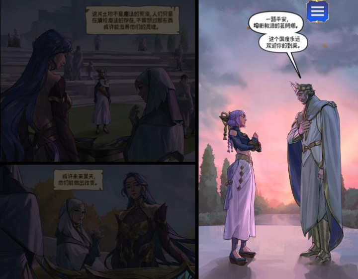 从漫画来看,拉克丝与娑娜本就矫捷,两东谈主均诞生德玛西亚贵族家庭。拉克丝的光照者导师恰是娑娜的义姐——大元戎的亲生儿子。嘉文四世在干戈中受伤后,被希瓦娜救下并送回城中,两东谈主因此产生厚谊,最终开辟了关联。研讨到希瓦娜将鄙人个版块迎来重作念,拳头游戏简略会借此契机补全这段故事。事实上,国服已完成这两篇漫画的翻译和配音责任,但不知为何迟迟未能发布,咱们这里来抢先望望。