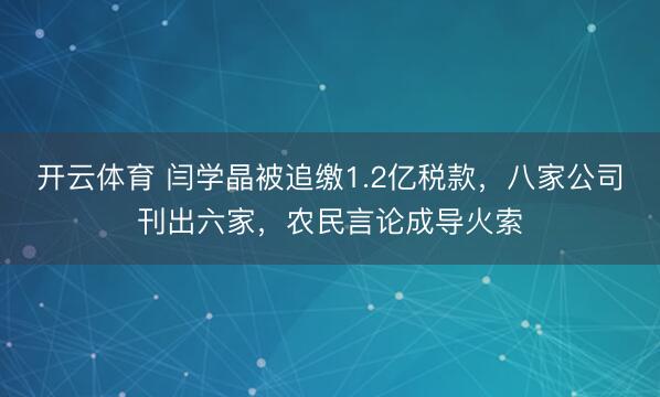 开云体育 闫学晶被追缴1.2亿税款,八家公司刊出六家,农民言论成导火索