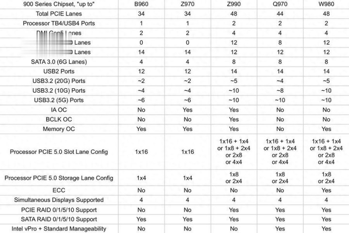全新的900系列芯片组共包含5款家具,袒护了从顿然级到职责站的全场景需求,其中顿然级市集包括面向主流初学的B960、定位次旗舰超频的Z970以及旗舰级的Z990,商用市集则有面向企业级的Q970,而职责站市集则由专科级的W980复旧。英特尔默示,由于“H”系列芯片组市集需求握续低迷,该家具线已在800系列中被取消,明天将由定位略低于旗舰Z990的Z970芯片组填补其市集空缺。