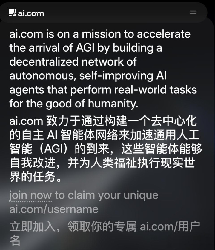 【新智元导读】币圈狠东谈主Kris Marszalek,5亿买下AI.com,为我方抢下一张通往AGI的入场券。