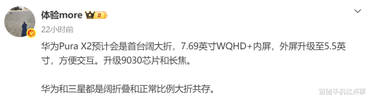 然后华为Pura X2最中枢的变化就体目下这个“阔”字上,其内屏将是一块7.69英寸的WQHD+永诀率大屏,并对峙专有的16:10比例。